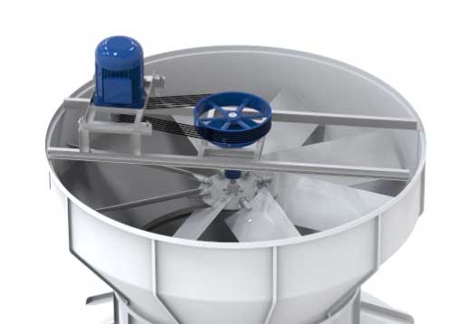噴水泵向銅管上噴灑大量水。由于上部相對(duì)靠近風(fēng)扇的位置,為了防止一些水被風(fēng)扇吸出機(jī)器,需要集水器阻塞排氣系統(tǒng)以排出噴霧水和熱蒸汽。走;弧形PVC高效脫水機(jī)用于確保高效通風(fēng),而噴霧水的漂浮率小于0.001%,可以使設(shè)備成為漂浮水敏感區(qū)域的一部分。